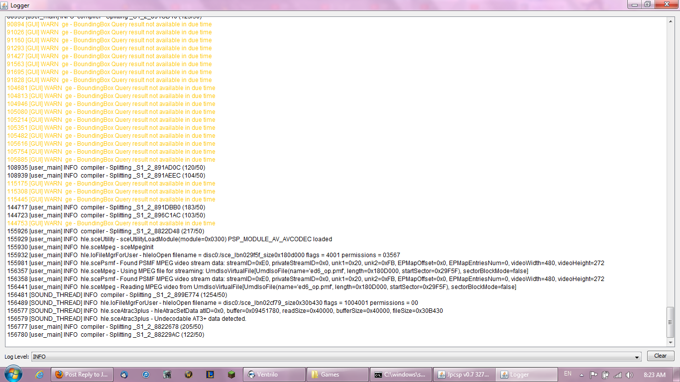 Hi, I am having a little trouble with jpcsp freezing when running Legend of Heroes: Trails in the Sky. Can anyone help me on this? I attached the info log via image because once it freezes, I can't copy it anymore.