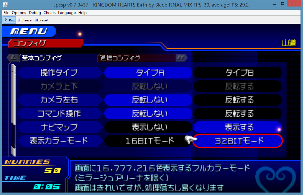 Kingdom Hearts Birth by Sleep Final Mix which game allow you choose 16 bit color depth or 32 bit color depth