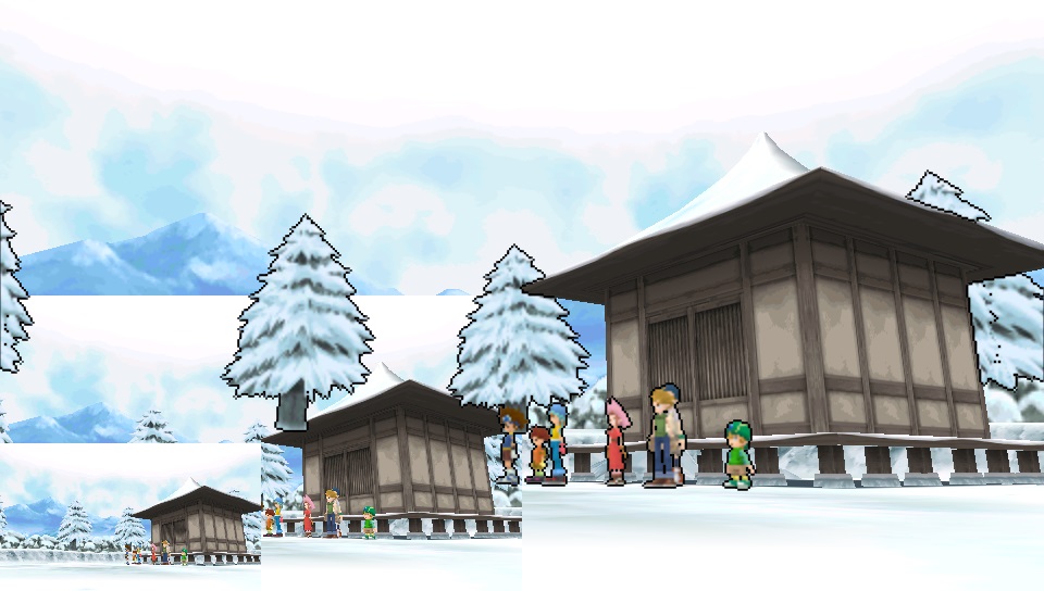 A graphical problem I forgot to mention last time was the outlines of characters and objects in the background. The outlines are either too abundant or placed incorrectly compared to the game being played on the PSP. Some objects in the background are missing the outlines.