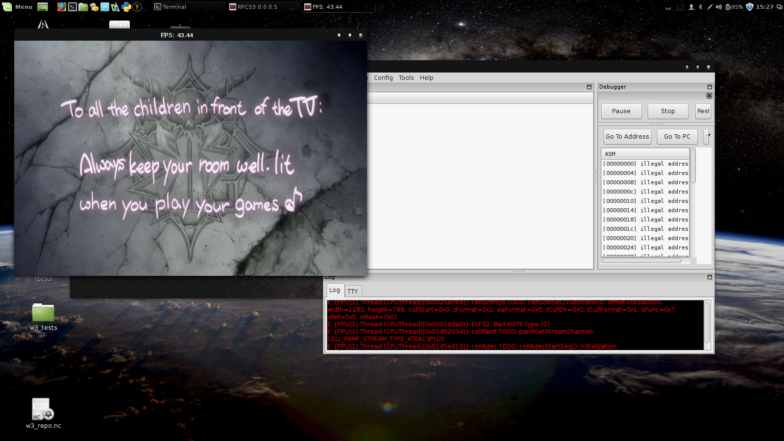 The first time I tried to build rpcs3 it failed because I'm mildly illiterate and used subversion. After checking it out with git and initializing as instructed it compiled without error and runs all of the elf files included just fine.