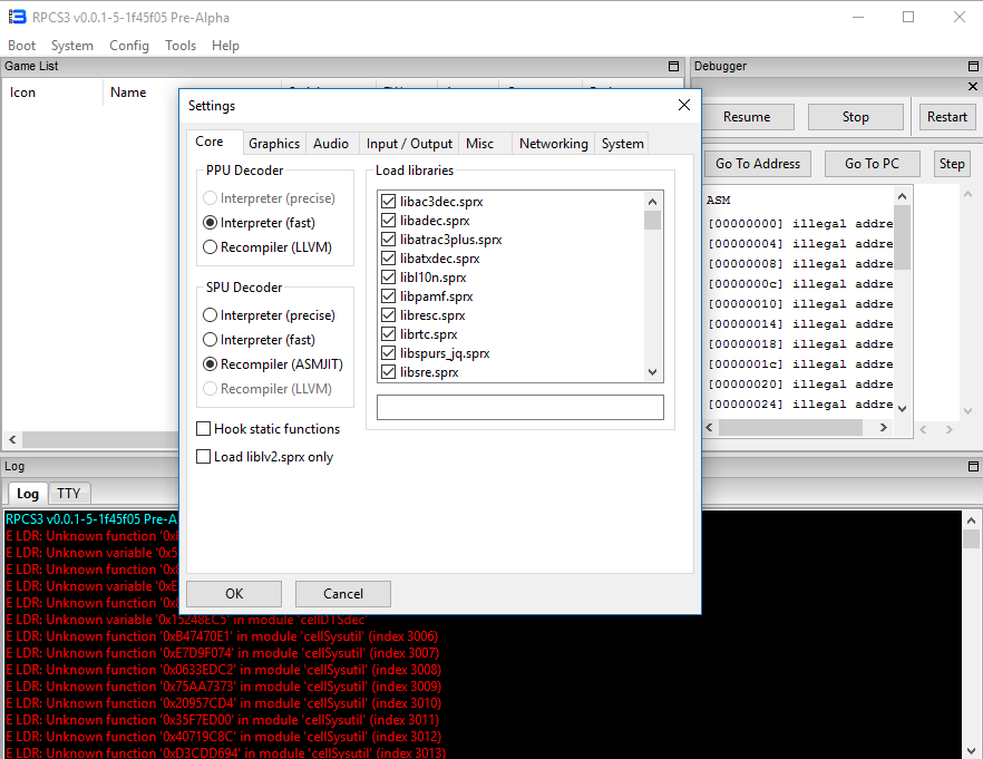 (03-03-2017, 03:47 PM)ssshadow Wrote: You incorrectly loaded libsysutil_np_trophy.sprx before (you can never LLE a module with 'sys' in it's name) so the game crashed. Now rpcs3 detects that this game only needs libsre, libspurs_jq, and libpngdec. Instead of crashing on a module that can't be used the game just hangs now.