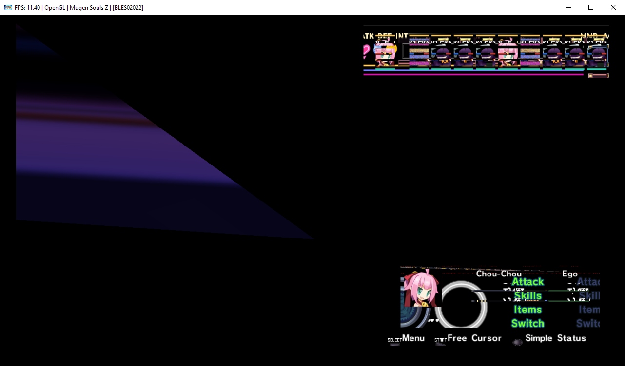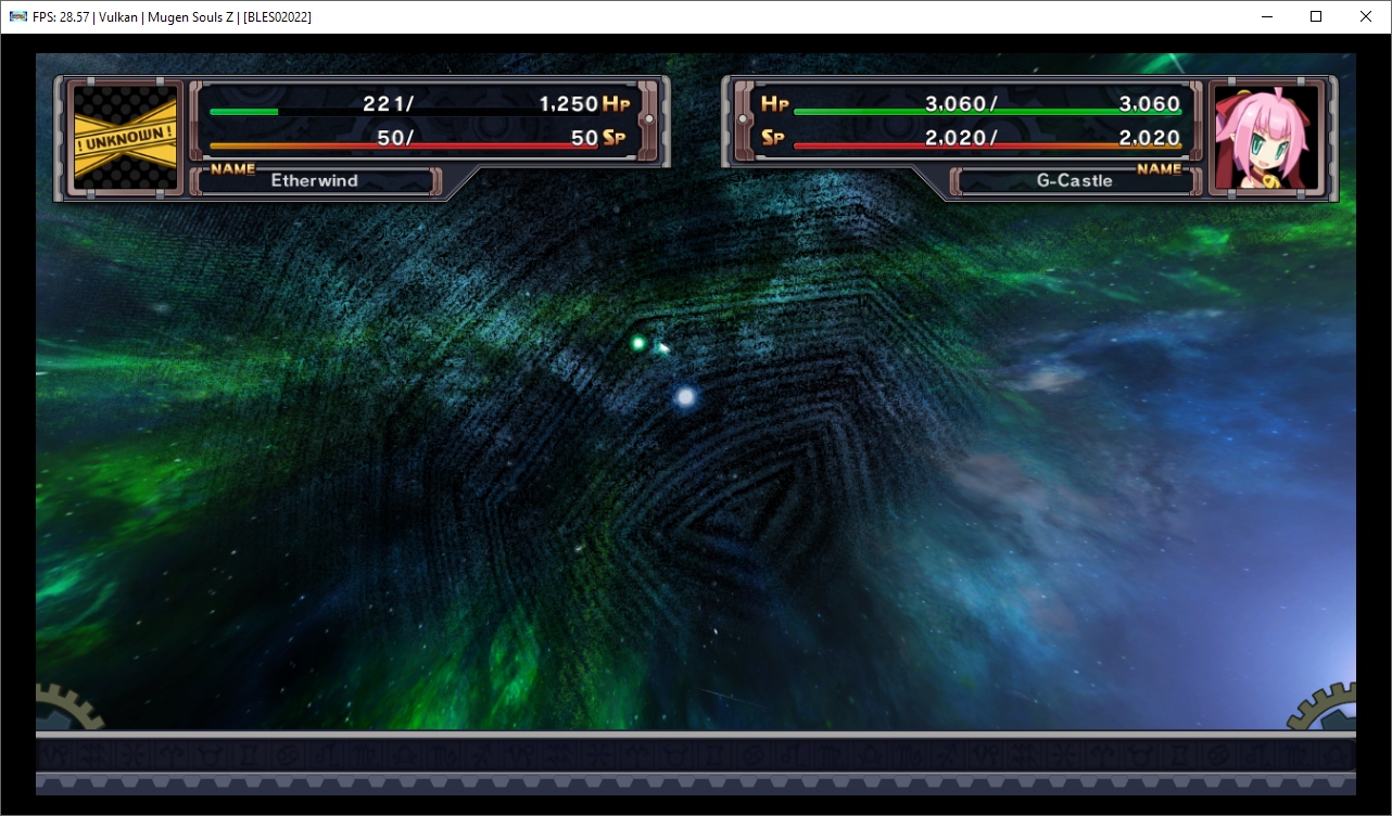I've had great results using Vulkan for this game. Video sequences run nicely at full 60 fps. Battles and in-game cutscenes run at about 20-30 fps with most effects intact. There are a few visual glitches here and there (see screenshots 7-9). Running around on an overworld, performance drops down to around 12 fps at worst (see screenshot #11).
