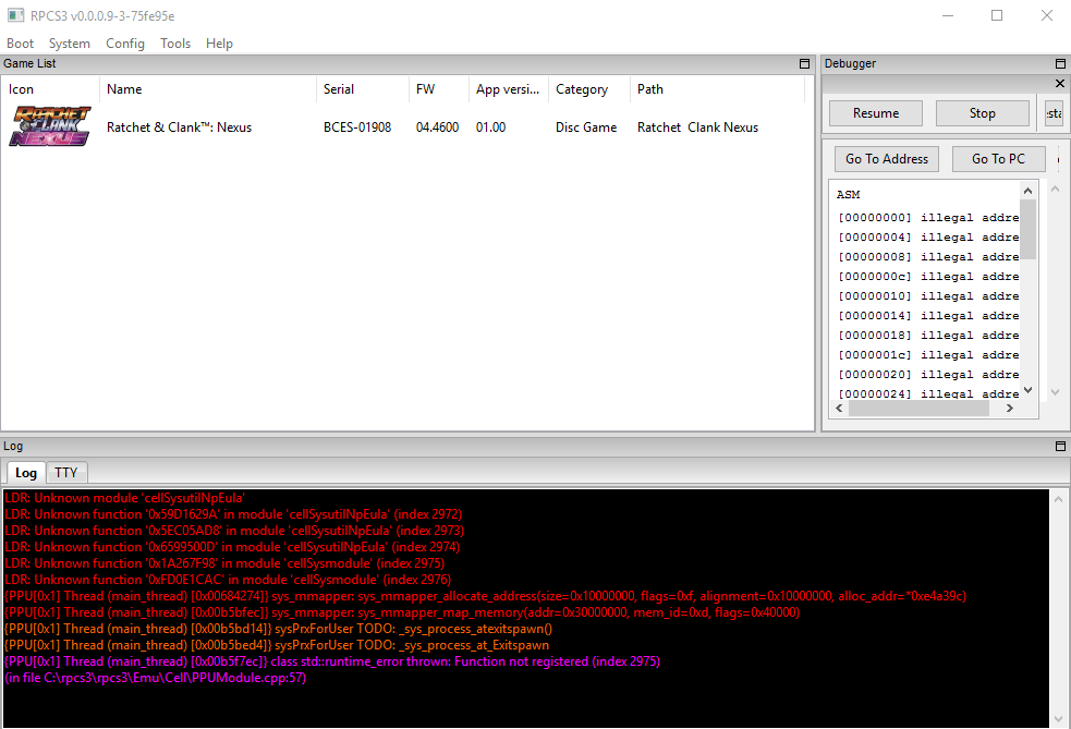 First of all I torrented a game called "Ratchet and Clank: Into the nexus" and extracted it into the dev_hdd0\game directory, it pops up in the program when I open RPCS3 but when I double click it, it says there are unknown functions and such, and when I click run it says a lot of different stuff as well. I'm completely new and would love some help
